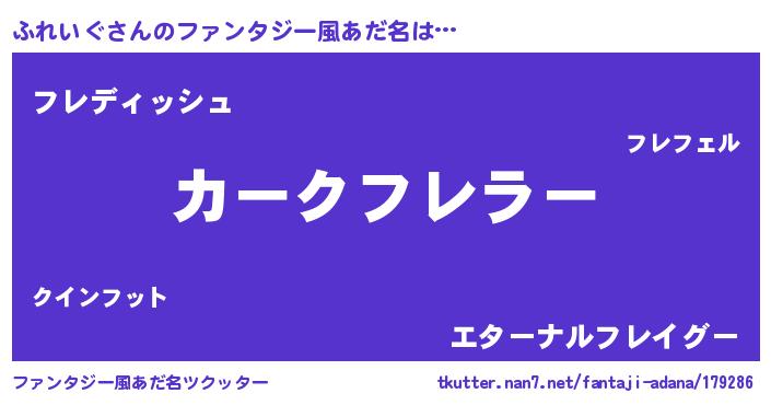 | 意味不明あだ名 | 『永久保存ふれいぐ』『ペロリンふれいぐ』 |