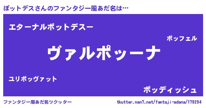 | 意味不明あだ名 | 『住所不定無職ぽットデス(98歳)』 |