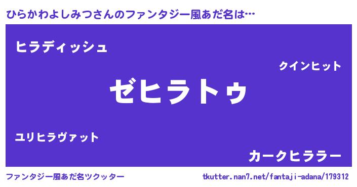 | ヘコむあだ名 | 『ひらかわよしみつ(笑)』『ひら太郎』 |