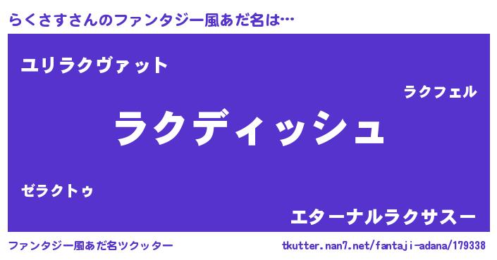 | ヒーロー風カッコイイあだ名 | 『ネオラクサス』『ウルトラらくさすマン』 |