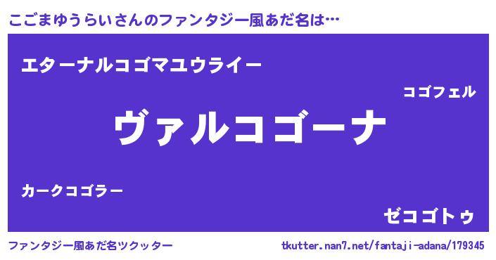 | 意味不明あだ名 | 『住所不定無職こごまゆうらい(2歳)』 |