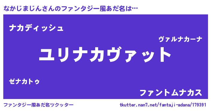 | 男性向けラノベタイトル風あだ名 | 『ナカジマジンスレイヤー』 |