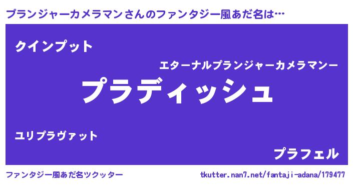 | ヘコむあだ名 | 『プランジャーカメラマン(小並感)』 |