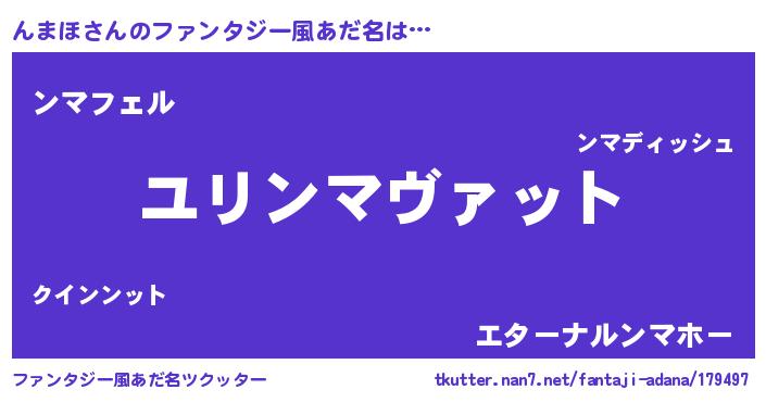 | 自動車の名前っぽいあだ名 | 『ンールスマイス』『ンマティマ』 |