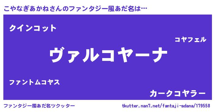 | 意味不明あだ名 | 『住所不定無職こやなぎあかね(2歳)』 |