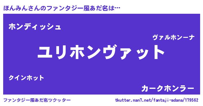 | 胡散臭い通販商品みたいなあだ名 | 『来世でも幸せになれる水素水…その名も「ほんみん」』 |