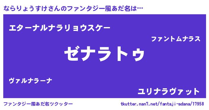 | 男性向けラノベタイトル風あだ名 | 『Re:ならりょうすけから始める異世界生活』 |