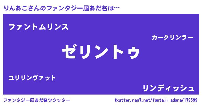 | 男性向けラノベタイトル風あだ名 | 『Re:りんあこから始める異世界生活』 |