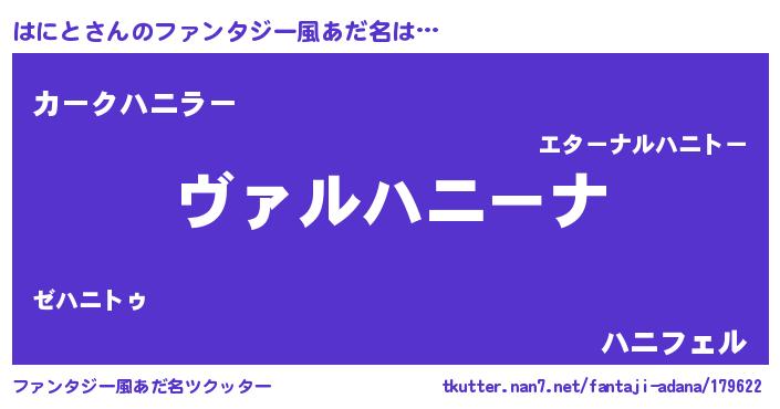 | 胡散臭い通販商品みたいなあだ名 | 『あなたにだけ特別に提供する世界で10本だけ現存している希少なブランデー…その名も「はにと」』 |