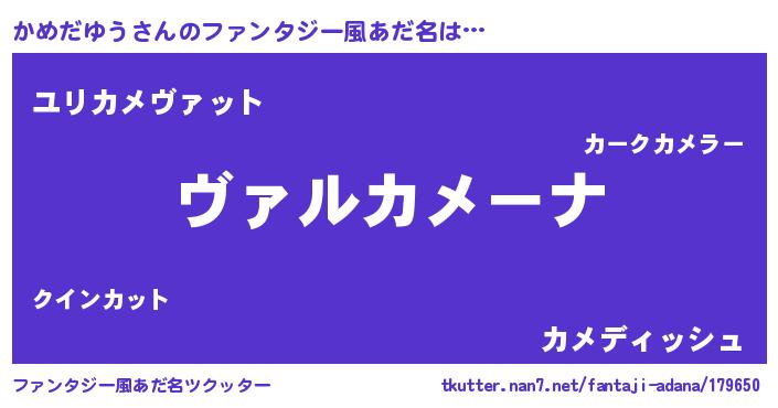 | 男性向けラノベタイトル風あだ名 | 『魔弾の王とかめだゆう』 |