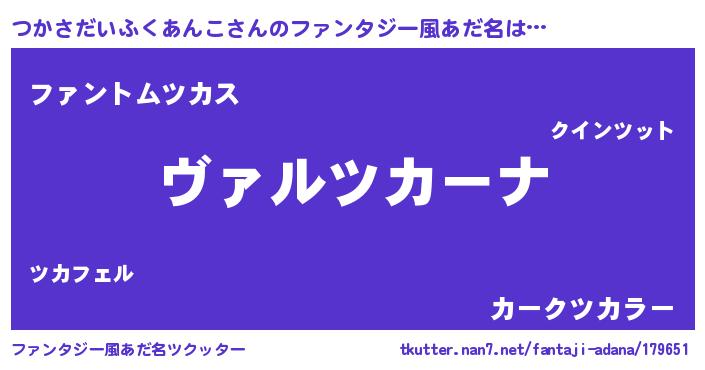 | ポケモン風あだ名 | 『ツーカイ』『ヒツカサダイフクアンコ』 |