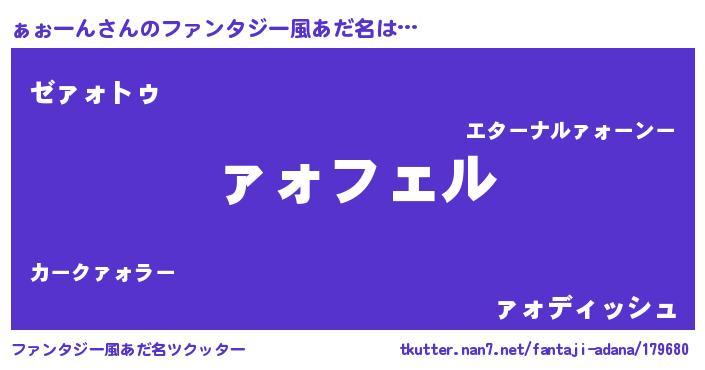 | 男性向けラノベタイトル風あだ名 | 『ァォーンアートオンライン』 |