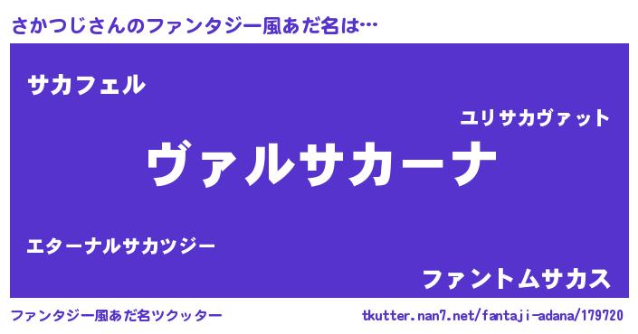 | 男性向けラノベタイトル風あだ名 | 『魔弾の王とさかつじ』 |