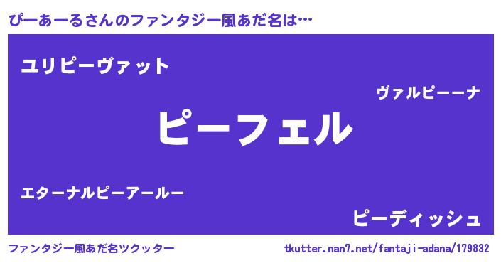 | 女子向けラノベタイトル風あだ名 | 『(仮)ぴーあーるのやんごとなき事情』 |