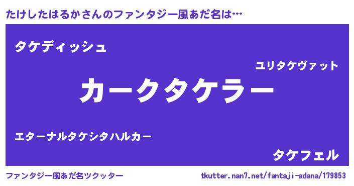 | ヘコむあだ名 | 『たけしたはるか(遠い目)』『たけっふぃ~』 |