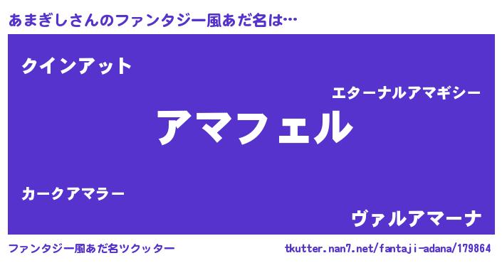 | 自動車の名前っぽいあだ名 | 『アマティマ』『フィッア』『アクア』 |
