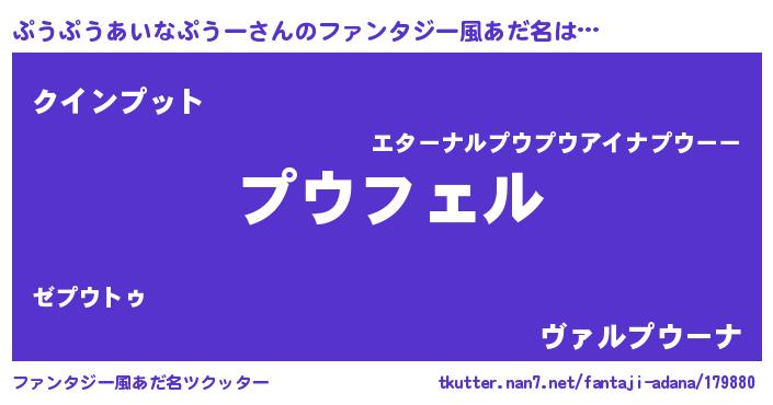 | 男性向けラノベタイトル風あだ名 | 『ぷうぷうあいなぷうーの憂鬱』 |