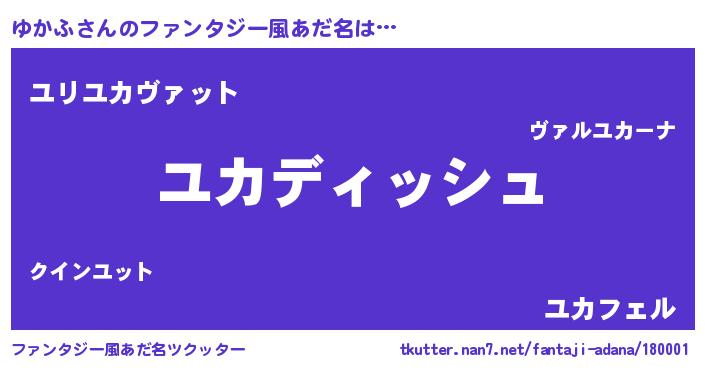 | 男性向けラノベタイトル風あだ名 | 『ゆかふという概念が存在しない退屈な世界 』 |