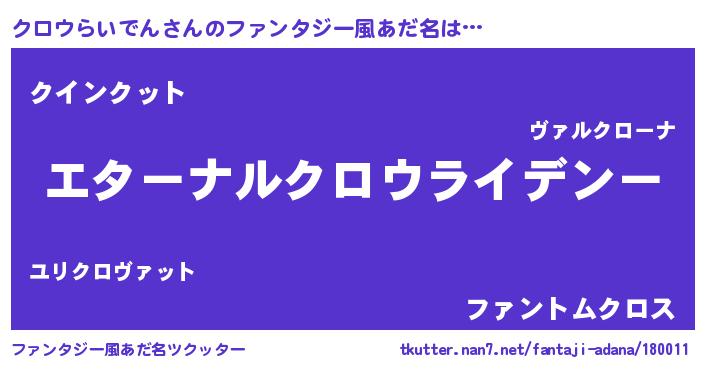 | 欧米人風あだ名 | 『クロウらいでんクリステル』 |