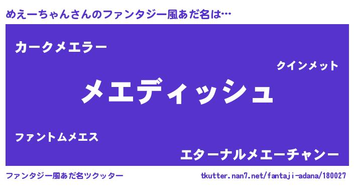 | ヒーロー風カッコイイあだ名 | 『ネオメエーチャン』『黄金騎士メエ』 |