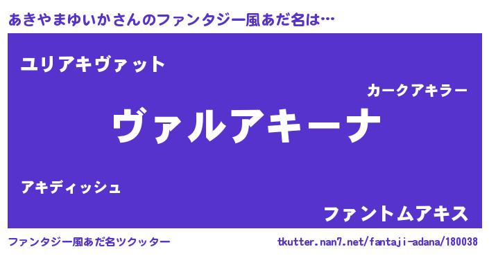 | 男性向けラノベタイトル風あだ名 | 『この素晴らしい世界にあきやまゆいかを!』 |