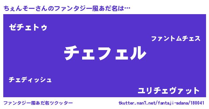 | ヘコむあだ名 | 『ちぇにゅー』『ちぇぷりん』 |