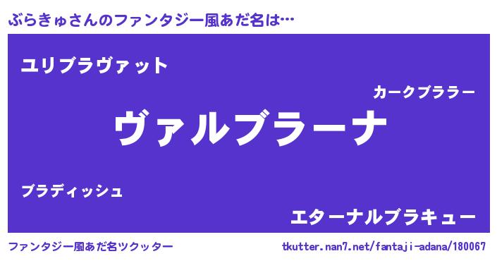 | 男性向けラノベタイトル風あだ名 | 『ぶらきゅに滅ぼされるだけの簡単なお仕事です』 |