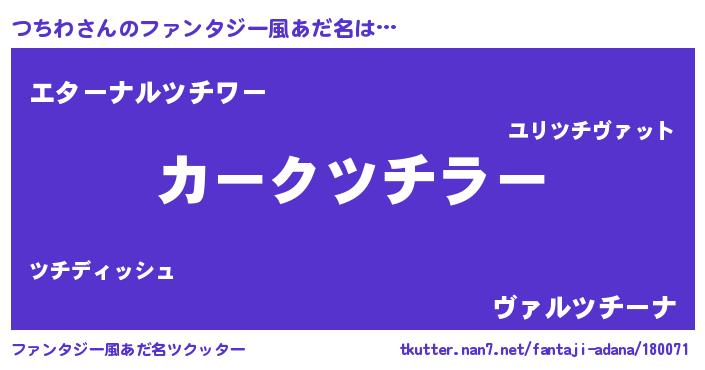 | 欧米人風あだ名 | 『つちわ・ステッグマイヤー』 |