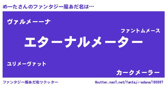 | 女子向けラノベタイトル風あだ名 | 『めーた伯爵の花嫁』『めーた様がみてる』 |