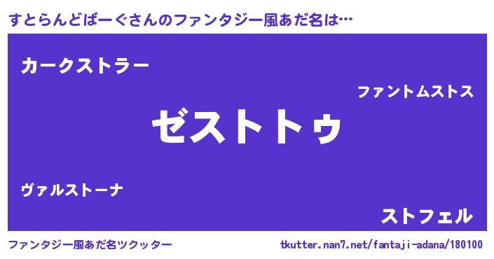 | 男性向けラノベタイトル風あだ名 | 『Re:すとらんどばーぐから始める異世界生活』 |