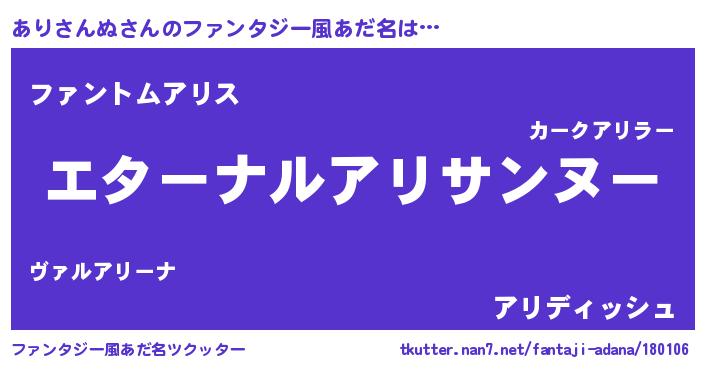 | 男性向けラノベタイトル風あだ名 | 『やはりありさんぬの青春ラブコメはまちがっている 』 |