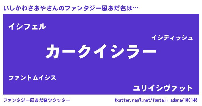 | ヘコむあだ名 | 『いしふぇ~』『いしかわさあや(小並感)』 |