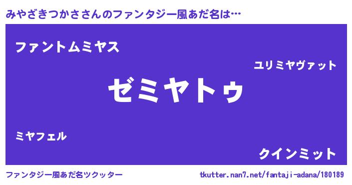| ポケモン風あだ名 | 『ミヤセウス』『ヒミヤザキツカサ』 |