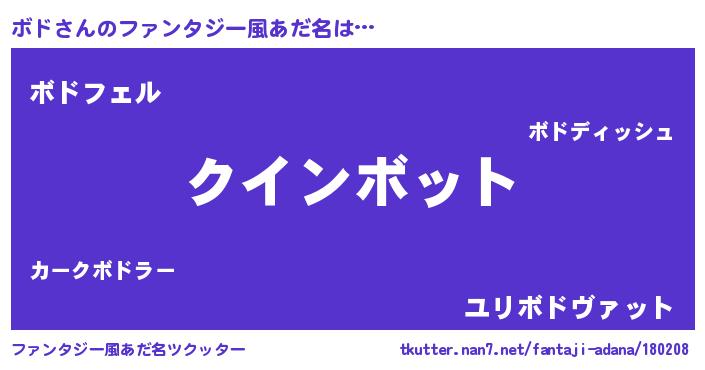 | 女子向けラノベタイトル風あだ名 | 『ボド恋絵巻』『ボド姫と円卓の騎士』 |
