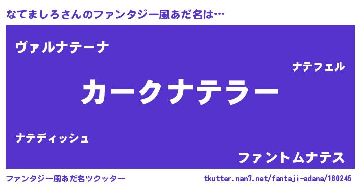 | 意味不明あだ名 | 『住所不定無職なてましろ(84歳)』 |