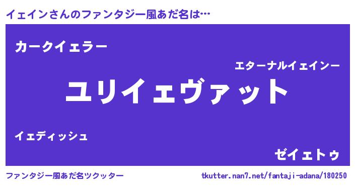 | 女子向けラノベタイトル風あだ名 | 『イェインの玉の輿計画!』 |