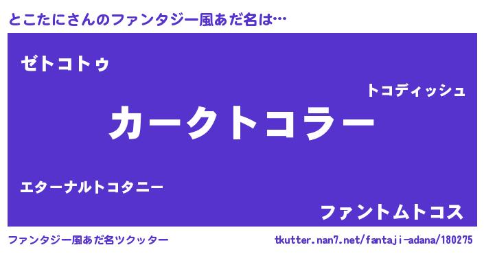 | 意味不明あだ名 | 『自称とこたに』『永久保存とこたに』 |