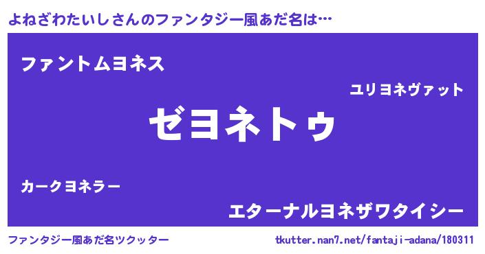 | 欧米人風あだ名 | 『ケンブリッジよねざわたいし』 |