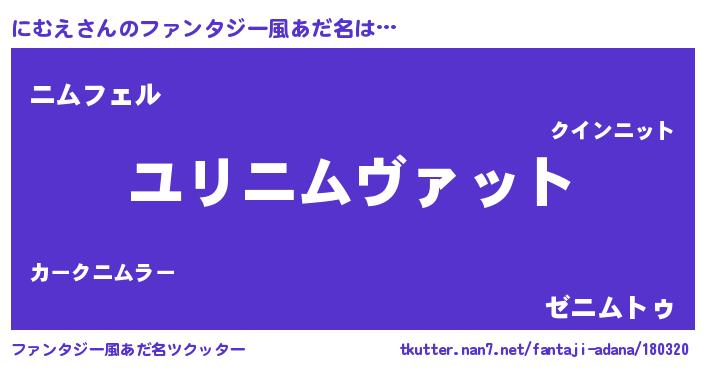 | 胡散臭い通販商品みたいなあだ名 | 『必ず成功する霊験あらたかなお札…その名も「にむえ」』 |