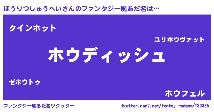 | 胡散臭い通販商品みたいなあだ名 | 『絶対に幸福をもたらす水素水…その名も「ほうりつしゅうへい」』 |