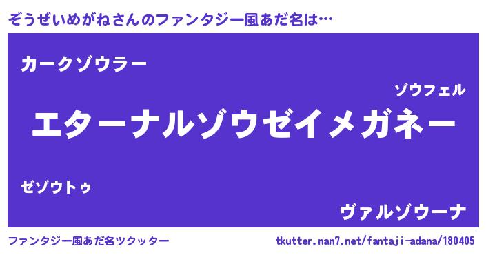 | 意味不明あだ名 | 『ぞうぜいめがねフォーエバー』 |