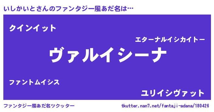 | ヒーロー風カッコイイあだ名 | 『仮面イシダー』『正義の使者いしかいと』 |