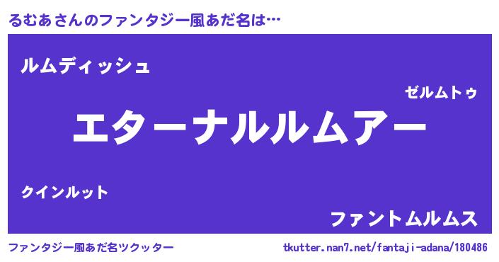 | 男性向けラノベタイトル風あだ名 | 『るむあに滅ぼされるだけの簡単なお仕事です』 |