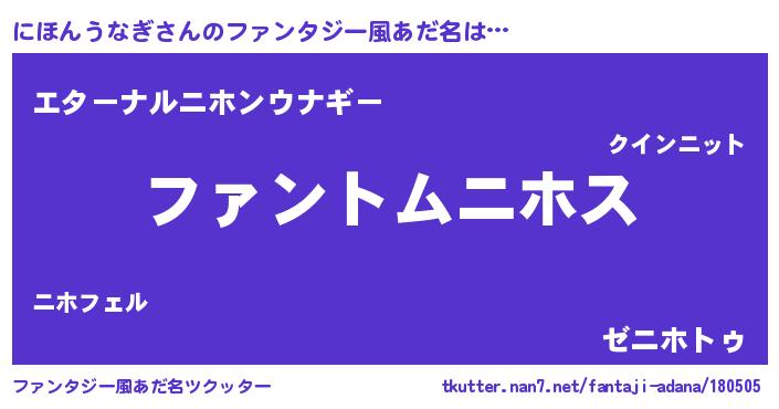 | 男性向けラノベタイトル風あだ名 | 『にほんうなぎの嫁は女の子じゃないと思った?』 |