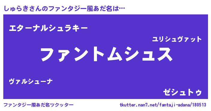 | 女子向けラノベタイトル風あだ名 | 『しゅらきは平凡を望む』 |