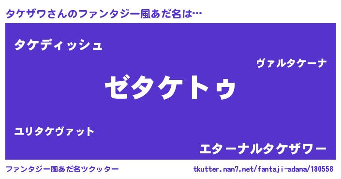 | ヒーロー風カッコイイあだ名 | 『ウルトラ戦士タケザワ』『ネオタケザワ』 |