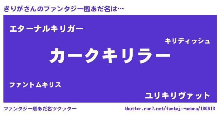 | ヒーロー風カッコイイあだ名 | 『ウルトラきりがマン』『ネオキリガ』 |