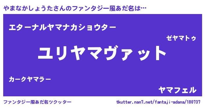 | 男性向けラノベタイトル風あだ名 | 『やまなかしょうた~年齢イコール彼女いない歴の魔法使い~』 |