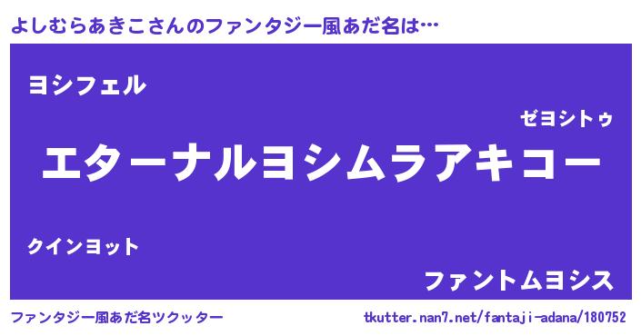 | 肩書あだ名 | 『よしむらあきこ総理大臣』 |