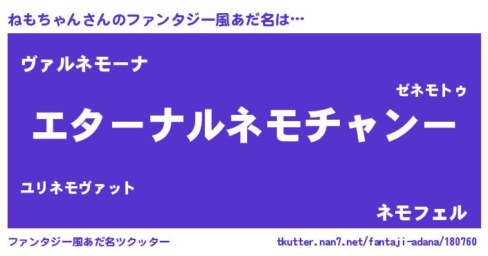 | 欧米人風あだ名 | 『ねもちゃんクリステル』 |